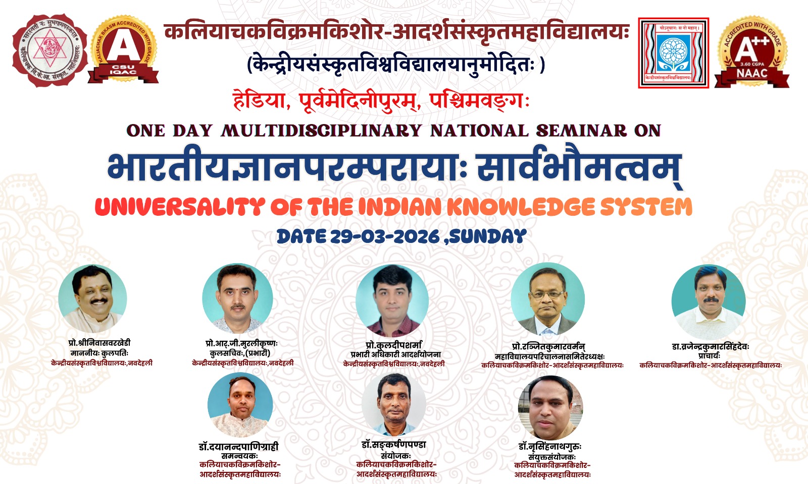 ONE DAY NATIONAL SEMINAR ON SANSKRIT & AYURVED -29-03-24